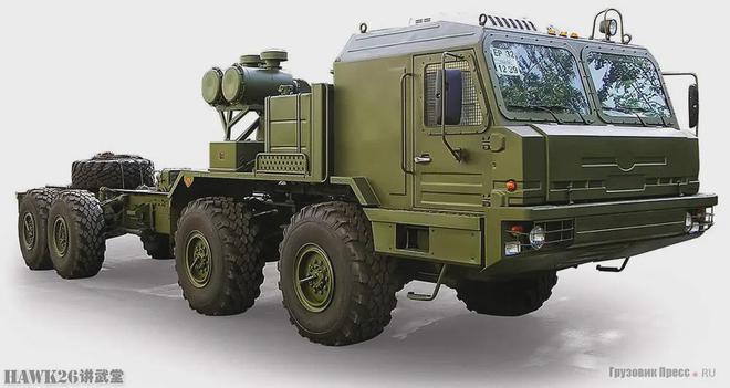 BAZ-6910-027是一款由布良斯克汽车厂(BAZ)研制的8×8全轮驱动越野底盘,是2S43和2S44的行动部分。BAZ-6910-027长12.4米,整备重量18吨,有效载荷20吨。该车配备一台500马力的YaMZ-849柴油发动机,最高行驶速度80千米/小时,续航里程1000千米。采用驾驶室前置布局,后部平台用于安装炮架、弹药舱和千斤顶。此前展示的2S44“风信子-K”配备了格栅装甲和伪装网,形成一个箱体外形,旨在减少视觉和红外特征。